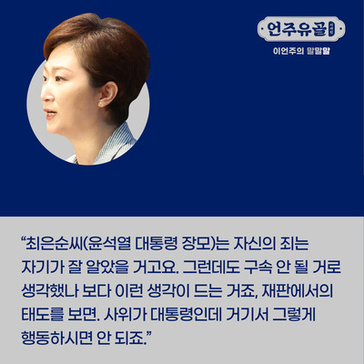 “항소심까지 충분히 방어권이 보장됐으며 죄질이 매우 나빠 법정구속한다.”지난 7월21일 윤석열 대통령의 장모 최은순씨가 통장 잔고증명 위조 등 혐의와 관련된 항소심에서 법정구속됐습니다. 재판부는 “피고인(최은순)은 관여를 부정하기 어려움에도 항소심에 이르기까지 범행을 부인했다”라며 “범행규모와 횟수, 수법 등에서 죄질이 무겁고 비난가능성이 크다”라고 밝혔습니다. 최은순씨는 “나를 법정구속 시킨다고”라고 소리치며 “죽어버리겠다”라고 주저앉아 난동을 피우다 끌려갔습니다.더불어민주당은 최은순씨 구속 후 브리핑을 통해 “사필귀정”이라고 밝