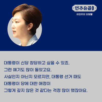 이언주(전 국회의원, 국민의힘)"국민의힘 보고서에 따르면 서울 49석 가운데 우세 지역이 6곳이라고 하던데, 제가 볼 때는 6석도 많아요. 다음 총선에서 90석이나 얻으면 다행이에요. 무작정 열심히 해서 될 게 아니라 ‘반윤’ 전선이 생기지 않게 구도를 바꿔야 해요. 윤석열 대통령이 탈당하면 돼요. 그래야 국민의힘이 살아요.대통령이 탈당하고, 당도 대통령과 선을 긋고, 이 상황을 초래한 책임 있는 ‘윤핵관’ 지도부 물러나고, ‘용핵관’과 ‘검핵관’ 불출마해야 총선에서 겨우 승산이 있을까 말까예요. 대통령실 사람들은 무슨 낯짝으로 총