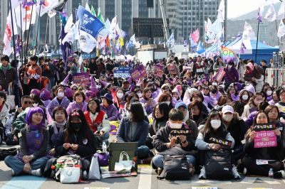 지난 3월8일 세계 여성의 날에 열리는 한국여성대회 사회를 맡았다. 햇살은 따뜻했지만 아직 겨울이 남아 있어 나는 광화문역에 내리자마자 급히 내복을 사 입었다. 〈시사IN〉에 연재하면서 꼭 정치적 얘기를 할 필요는 없지, 생각했는데 어쩌다 보니 지난달에 이어 또 집회 얘기를 하고 있다.행사는 정말 힘들었다. 진행하기가 어려웠거나 그런 문제가 아니라 기운이 어마어마하게 쓰였다. 무당이 굿을 하고 나면 이런 느낌일까? 멋진 사람들을 보고 감동했다가(성평등 디딤돌 부문), 올해의 한심한 인간들을 비판했다가(성평등 걸림돌 부문), 이소선