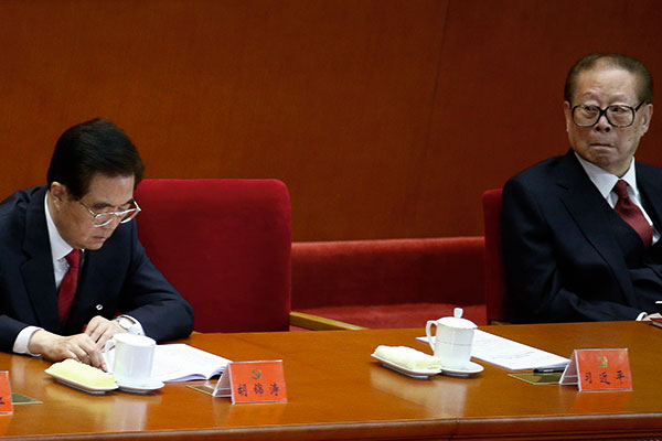 후진타오(왼쪽) 전 중국 국가주석이 나란히 앉아 있다.