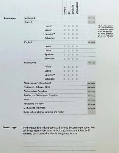 딸이 지난 7월에 2학년을 마치면서 받아온 성적표엔 ‘성적 안 매김’이라고 쓰여 있었다. 두어 달의 휴교가 학습 결과에 미친 영향이 크다고 본 정부의 방침이다. 칸톤(주)마다 다르지만, 취리히에선 인문계 고등학교의 졸업시험인 마투라도 취소됐다. 한국으로 치면 수능이 취소된 셈이다. 성적이나 시험보다 학교 출석 자체를 더 중요시하는 교육철학을 짐작할 수 있다. 반면 한국은 세계 최장 수준의 휴교 조치를 취하고도 수능은 강행한다고 한다. 이참에 고민해보자. 애초에 학교의 존재 의의는 무엇인가.