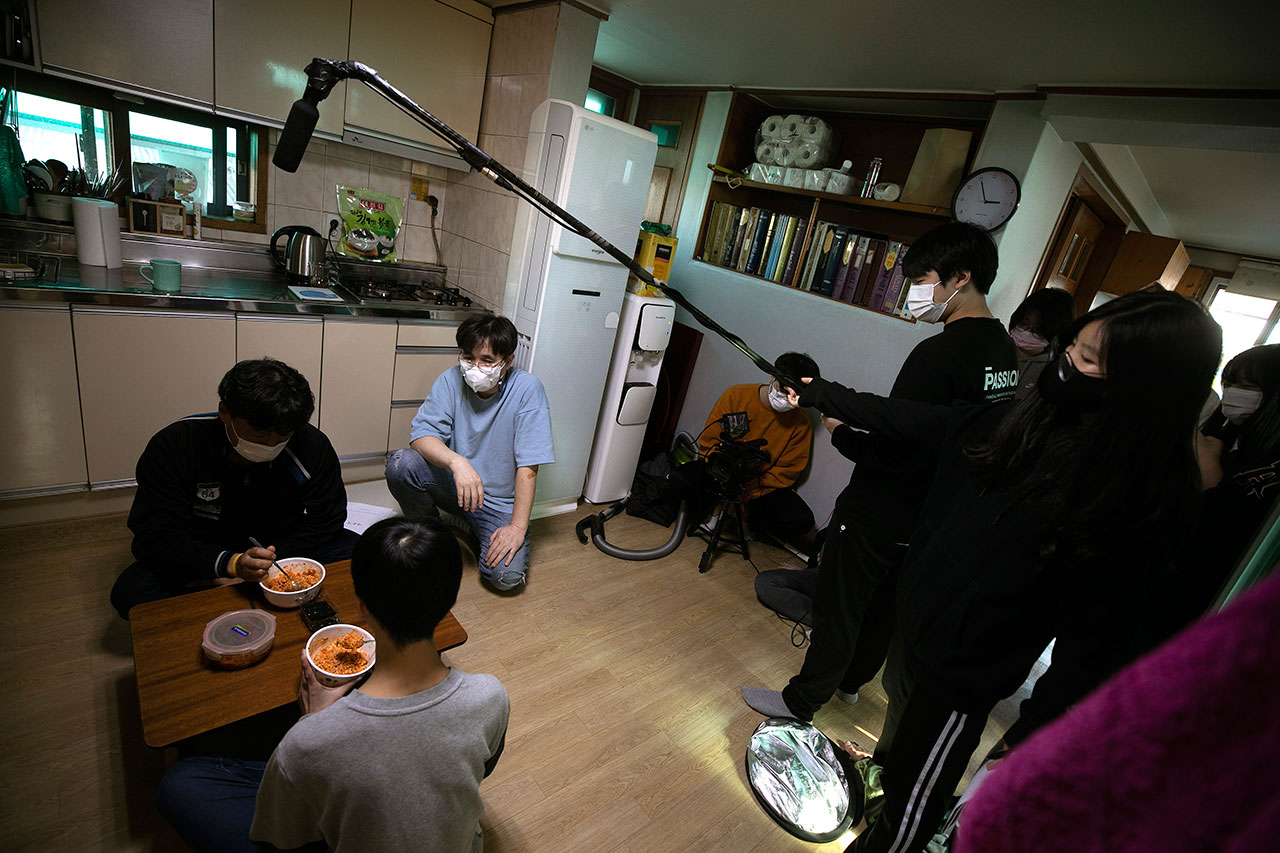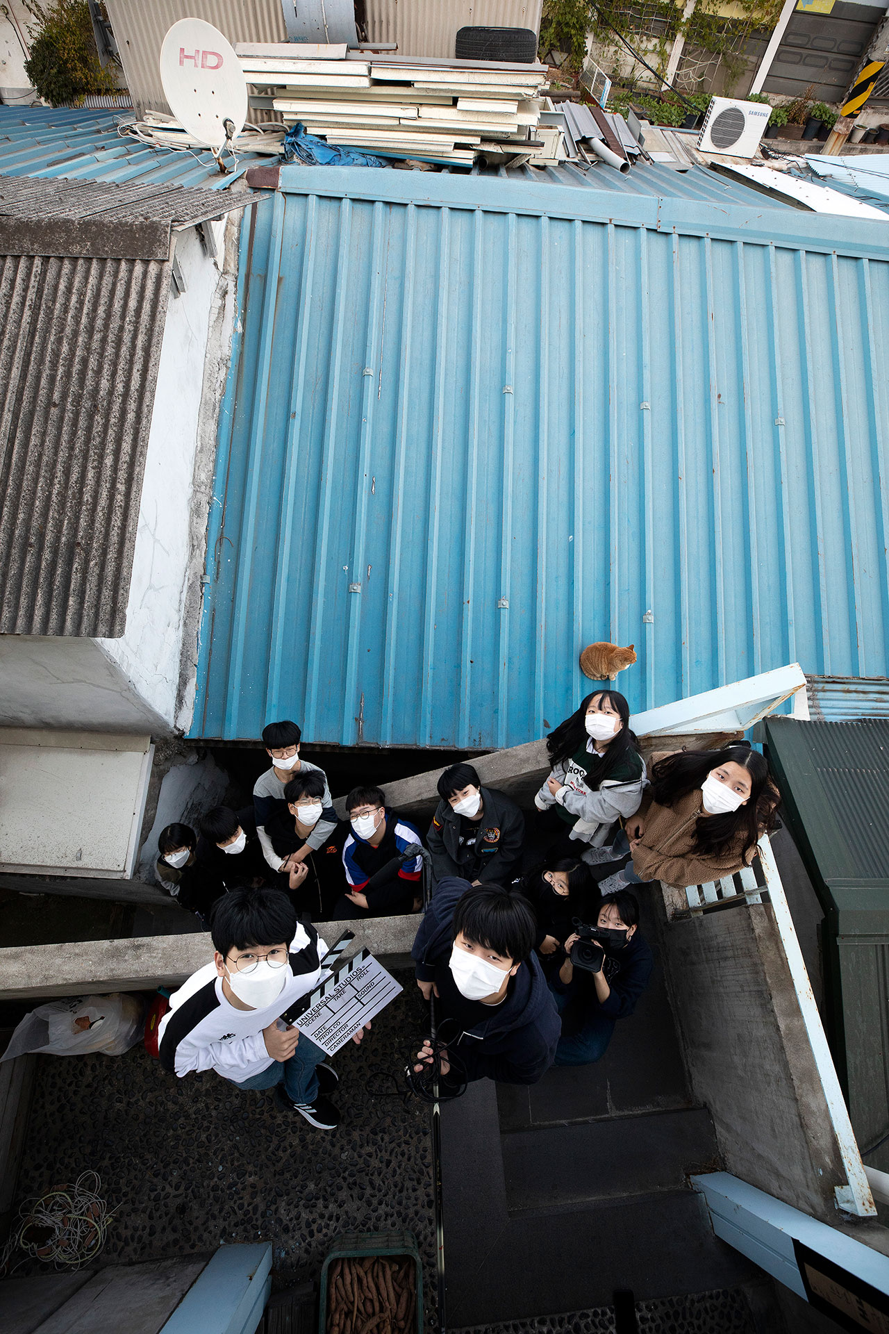 신발들은 많은데 실내는 고요했다. 아이들은 숨죽이며 무언가에 몰두하고 있었다. “씬 8 다시 1, 테이크 투, 액션!” 영화를 찍고 있었다. 제목은 〈사춘기〉. 이날은 마지막 촬영 날이었다. 공부방 2층 부엌에서 극 중 민호(박하늘)가 아버지(이광혁)와 밥을 먹으며 화해하는 장면을 찍는 중이었다. (김치볶음밥을 먹으며) “아빠가 만들었는데 어때?” “좀 짜.” 시큰둥하지만 현실적인 하늘이의 연기에 아이들은 침묵 속에서 어깨를 들썩였다. 마스크에 웃는 입은 가려졌지만 서로 교환하는 눈빛들이 반짝거렸다. 한마음으로 하나의 목표에 집중하는 사람들이 만들어내는 팽팽하고 기분 좋은 분위기가 촬영장을 가득 메웠다.