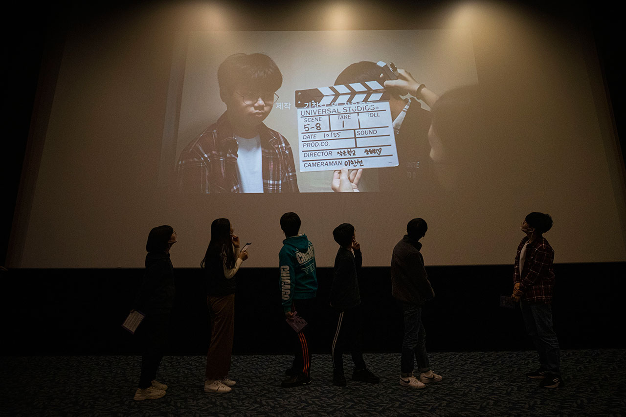 무대 인사차 스크린 앞에 선 중등부 아이들은 꽤 의연하게 자신들의 2020년을 회고했다. “코로나 시기에 친구들과 같이 영화를 만들어서 뿌듯해요(〈사춘기〉 배우 박하늘).” “이렇게 각각 개성 강한 사람들이 모여서 하나의 작품을 만든다는 게 너무 신기했고, 잘 만든 것 같습니다(〈핸드폰 분실 사건〉 감독 박예나).” “영화 찍을 때도 재미있었고 완성작도 마음에 들어서 너무 행복합니다(〈사춘기〉 스크립터·소품 담당 박예담).”
