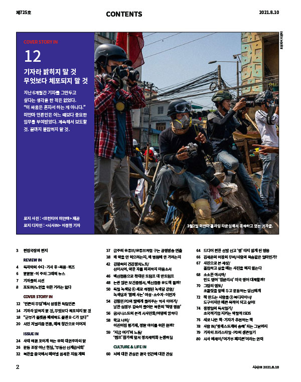기자라 밝히지 말 것, 무엇보다 체포되지 말 것지난 6개월간 기자를 그만두고 싶다는 생각을 한 적은 없었다. “이 싸움은 혼자서 하는 게 아니다.” 미얀마 언론인은 어느 때보다 중요한 임무를 부여받았다. 계속해서 보도할 것. 끝까지 붙잡히지 말 것.