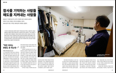 어머니 최진희씨는 정부가 자신을 ‘투사로 만드는 것 같다’고 말했다. 반성하지 않는 듯한 정부의 태도에 그는 분노했다. “사실 정부에서 ‘죄송합니다, 저희가 잘못했습니다’ 이렇게 말하면 위로받고 사그라들 감정이었어요. 그런데 오히려 정부의 대응이 감정에 불을 질러요. 유족을 분개하게 만드는 거죠.”