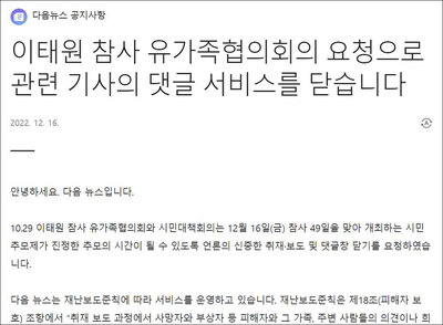 ※이태원 참사 2차 피해 우려가 있어 이 기사의 댓글 창을 닫습니다.