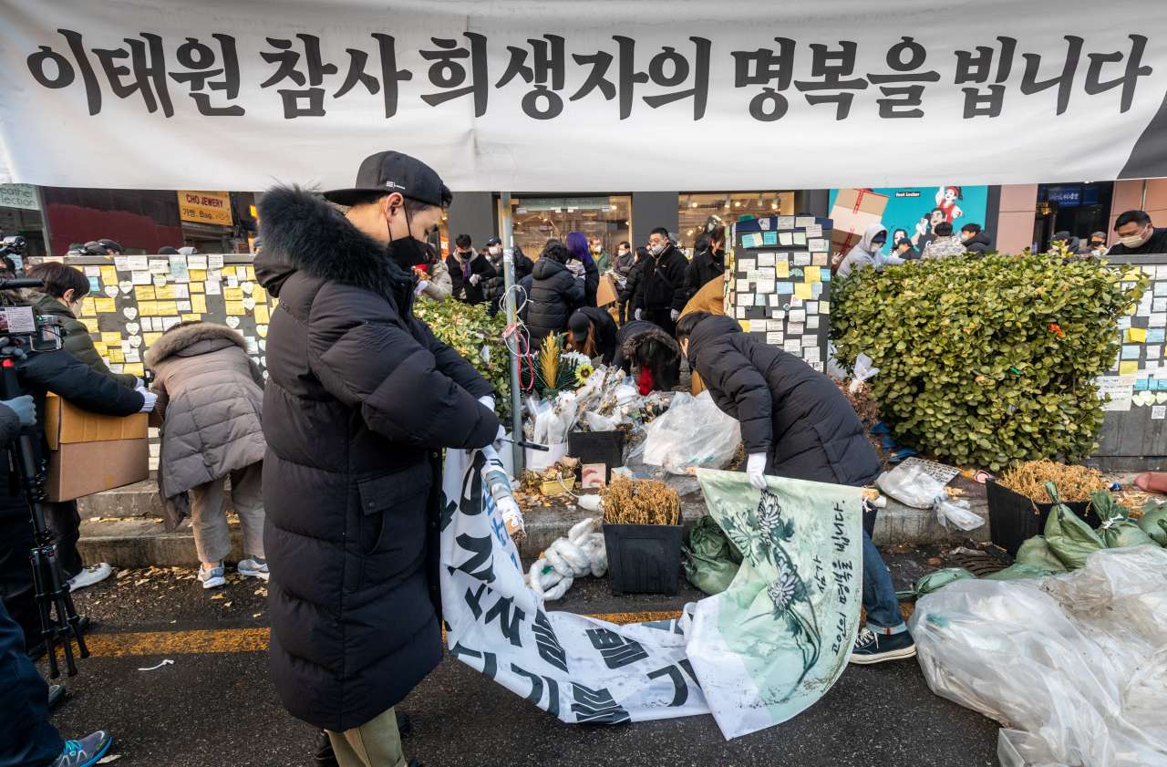 12월21일 이태원역 인근에 마련된 참사 추모공간이 정리됐다.ⓒ김흥구