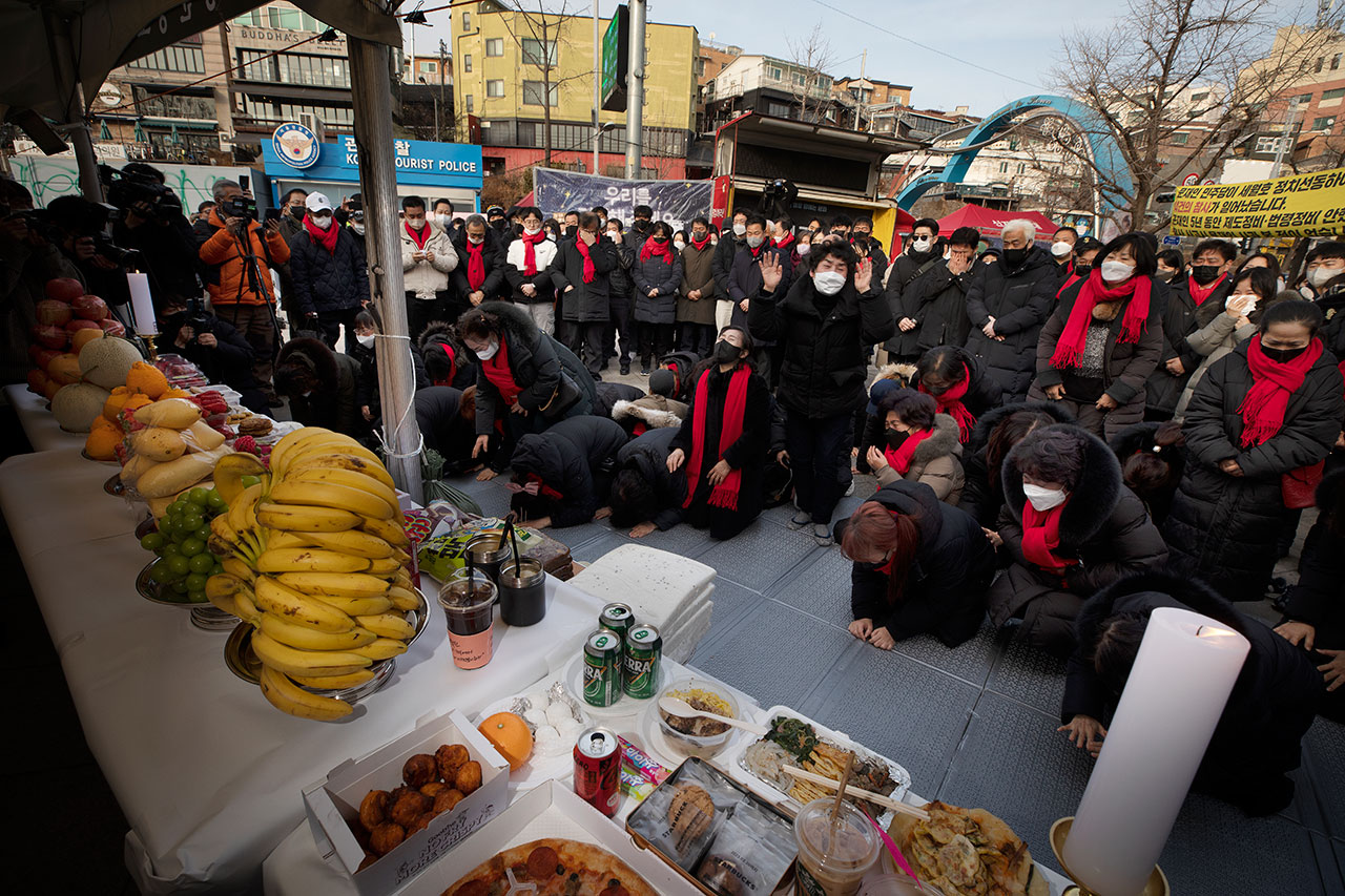 1월22일 오후, 시민사회단체와 이태원 참사 희생자 유가족 80여 명이 서울 녹사평역 합동분향소에서 합동 차례를 지냈다. 이태원 참사 이후 첫 설이다.