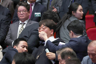 대통령 참석 행사에서 입 틀어막힌 국회의원 [기자들의 시선]