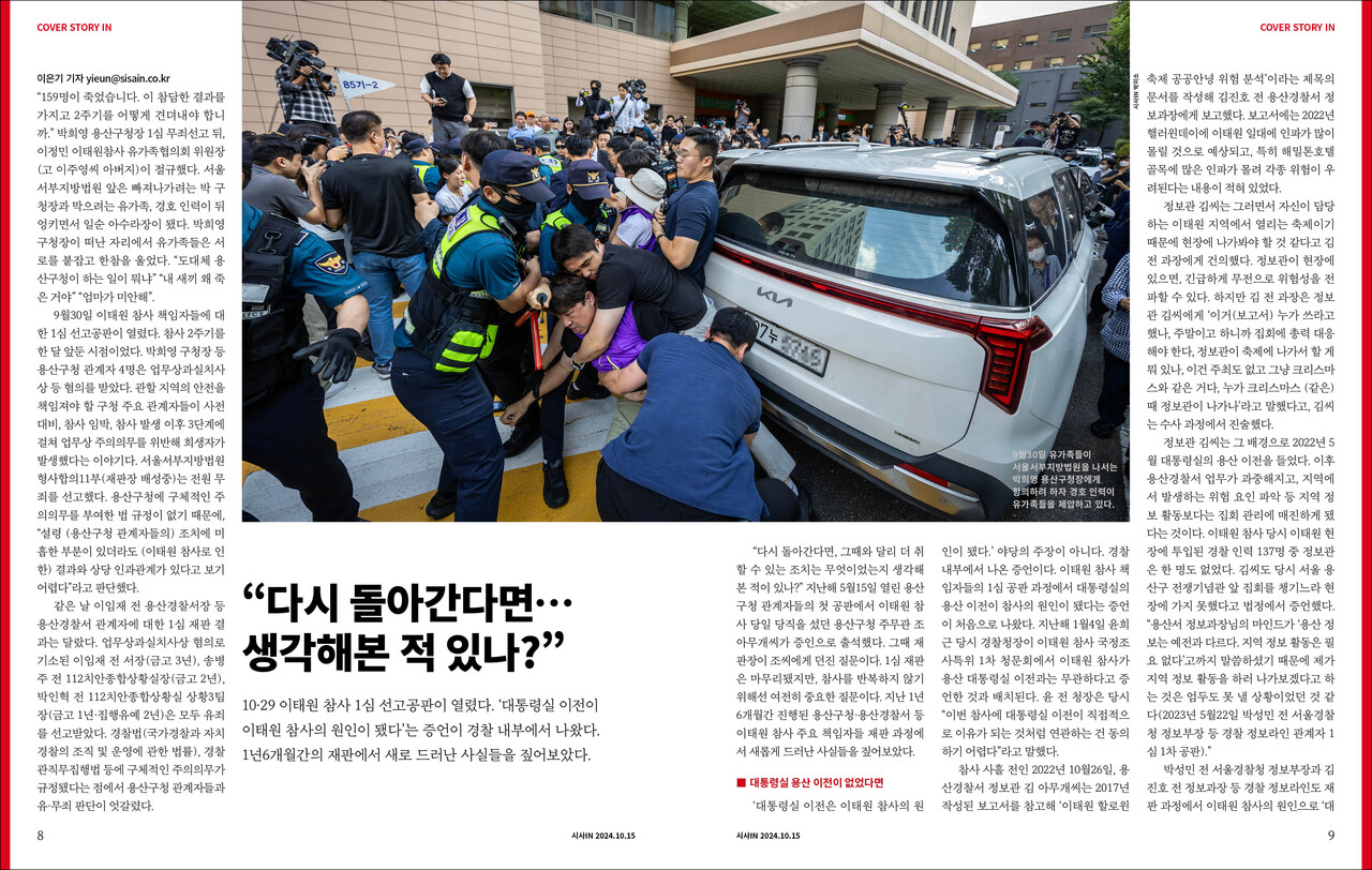 “됐다 됐어” “이제 끝났다”···. 박희영 용산구청장의 지지자들이었다. 9월30일 서울서부지방법원에서 열린 10·29 이태원 참사 책임자들에 대한 1심 선고공판에서 박 구청장이 무죄판결을 받자, 30명 남짓한 박 구청장 지지자들은 얼굴에 환한 표정을 지으며 서로 기쁨을 나눴다. 이태원 참사 피해자 유가족들은 그 모습을 견디지 못해 고개를 숙이고 법정 바깥으로 나와야 했단다. “참사 직후와 무엇이 달라졌나? 여기 어디에 반성이 있나?” 아직 화가 나 있는 이은기 기자와, 지난 호 커버스토리 기사에 다 담지 못한 이야기를 나눴다.