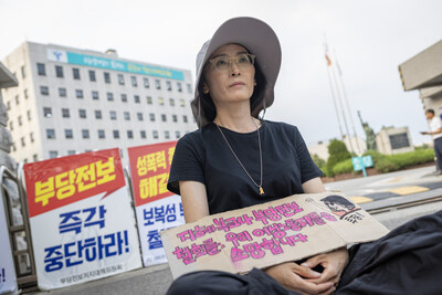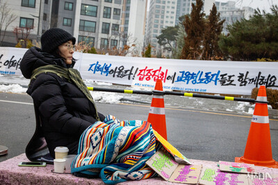 5월14일 오후 서울시교육청 앞 집회에 나온 지혜복 교사는 묵묵히 고개를 숙인 채 연대 발언을 듣고 있었다. 학교 내 성폭력 사안을 공론화 한후 해임된 지혜복 교사는 거리에서 500일 가까이 복직 투쟁을 하고 있다. 그리고 스승의 날을 하루 앞둔 날 결국 삭발을 결심했다.