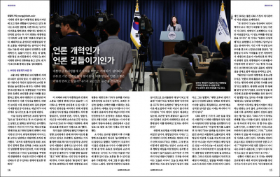 ‘언론 개혁인가, 언론 길들이기인가’. 김영화 정치이슈팀 기자가 지난 호에 쓴 기사 제목이다. 대통령실 브리핑 생중계와 유튜브 기반 언론인들의 대통령실 출입 문제를 다뤘다. 김 기...