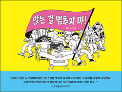 어느 날 대통령이 ‘앉는 행위 전면 금지’를 선포한다. ‘앉는 게 뭐 어때서’ ‘의자는 죄가 없다’ 같은 손피켓을 든 사람들이 광장으로 쏟아져 나왔다. 시민들은 아예 ‘의자 레이싱’ 게임을 벌이기로 했다. 각자 좋아하는 다양한 의자를 ‘타고’ 거리에 나와 경주를 벌인다. 함께한 덕분에 자유를 옭아매려 한 권력자를 끌어내릴 수 있었다. 불법 계엄 이후 빼앗긴 일상을 우리가 어떻게 되찾았는지, 동글동글 다정한 그림체로 이어지는 페이지를 넘길 때마다 뭉클한 마음으로 돌아보게 된다. 책 띠지를 벗기면 행렬 앞에 선 시민들 얼굴이 나타난다. 그 장면을 바라보니 어쩐지 코끝이 시큰해진다. 정말 그랬다, 광장에서 우리는 한순간도 ‘혼자’인 적이 없었다.